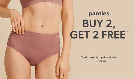Hurry! Shop in store and get panties for buy 2, get 2 free.