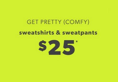 Hurry, limited time only! Shop in-store and get sweatshirts & sweatpants for $25 each.